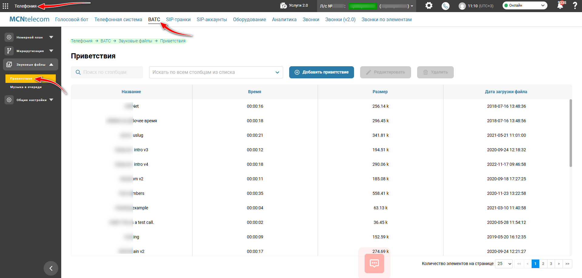 Приветствия представляют собой заранее записанные звуковые файлы, которые могут использоваться: