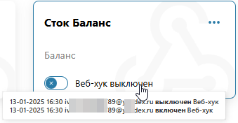 Для просмотра истории активации веб-хука, наведите курсор мышки на статус веб-хука.