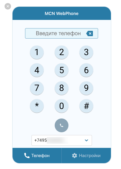 ✅ Примечание: Если значок отображается без короткого номера - значит к виджету не подключена SIP-учётка. Перейдите в «Настройки SIP» и подключите учётку с типом «MCN Webphone» по данной инструкции.