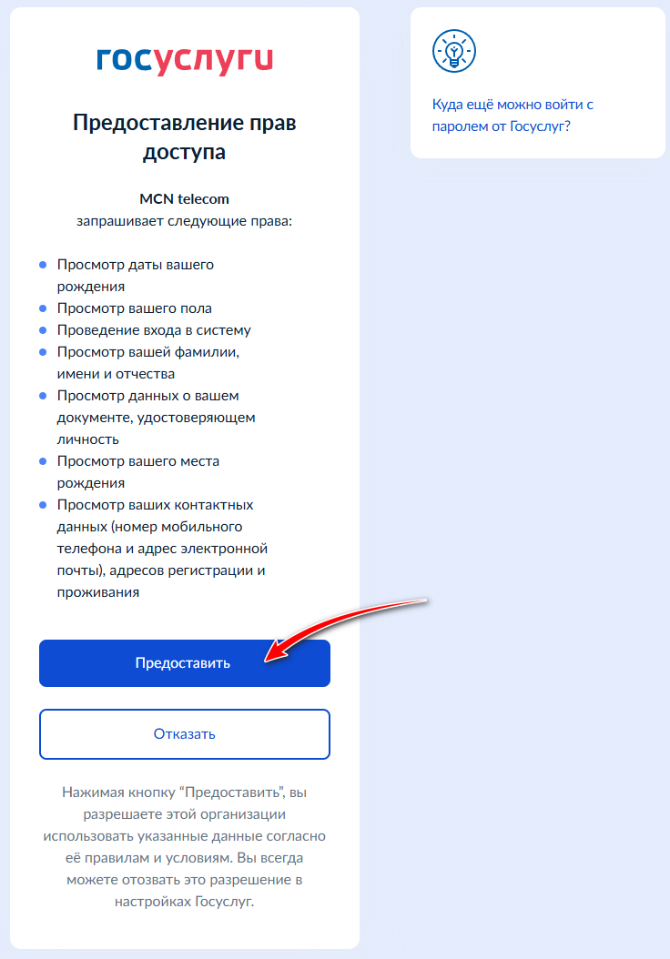 После входа в аккаунт необходимо нажать «Предоставить» в следующем окне.