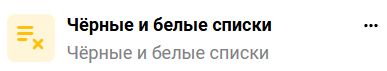 - Чёрный список — выбор «чёрного» или «белого» списка абонентов (это блокирование нежелательных вызовов с номеров из «чёрного списка» или приоритетная обработка вызовов из «белого списка»), в зависимости от которого, определяется дальнейший маршрут звонков. См.: «Элемент «Чёрный список».