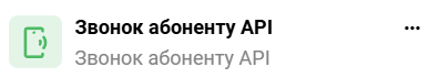 - Звонок Абоненту API — выбор элемента с настроенной интеграцией с клиентской CRM для запроса в CRM клиента с указанием номера звонящего, а в случае закреплённого менеджера за данным номером, звонок перенаправляется на него. См.: «Элемент «Звонок Абоненту API».