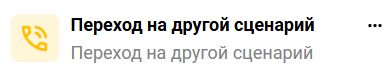 - Переход на другой сценарий — предназначен для переадресации на другие сценарии. См.: «Элемент «Переход на другой сценарий».