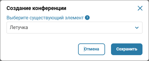Чтобы выбрать другую конференцию, перейдите к редактированию элемента, нажав на кнопку с карандашом.