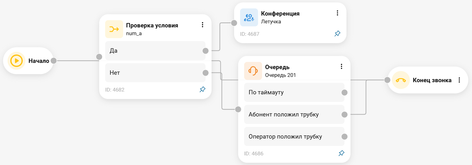 Пример сценария, где по условию «Да», абонент направляется на конференцию, а по условию «Нет» в очередь.