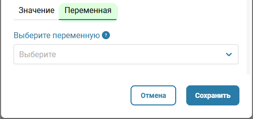 - Выберите переменную — название переменной для сравнения;