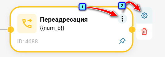 В разделе «Телефония» → вкладка «Сценарий звонков» → справа в боковом меню нажмите на три точки на иконке элемента «Переадресация».