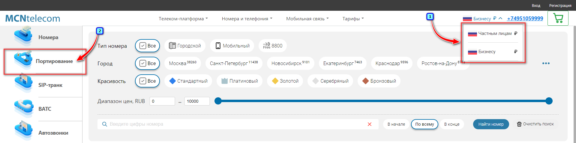 1. Для портирования перейдите на витрину по ссылке shop.mcn.ru.