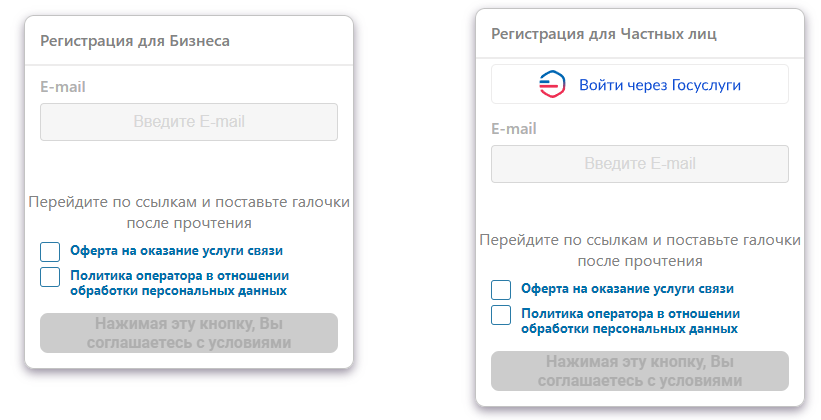 7. В открывшемся окне вам будет предложена регистрация в зависимости от выбранного лица.