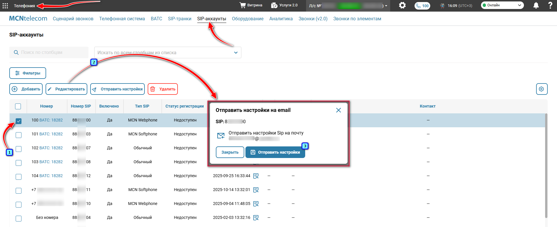 Отправить себе настройки по электронной почте. Для этого в Личном кабинете в разделе «Телефония» сделайте следующее: