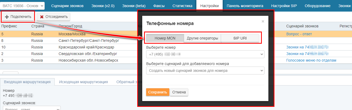 Нажмите «Сохранить». Выбранные номера будут добавлены на ВАТС.