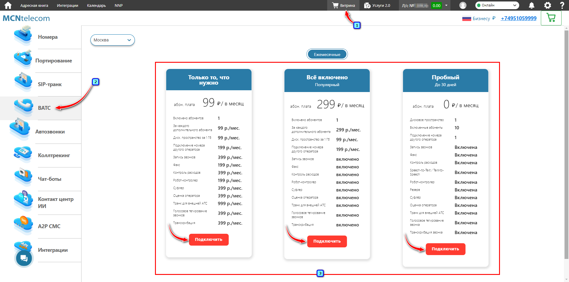 Перейдите на витрину, затем в меню слева в раздел ВАТС.