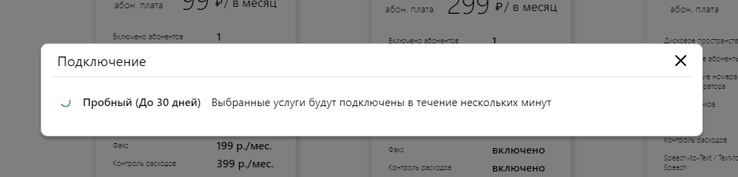 Будет запущено подключение ВАТС с выбранным тарифом.