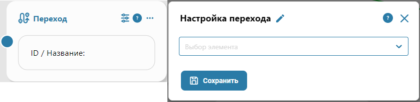 Элемент без узла выхода, после выполнения переносит сценарий на указанный элемент.