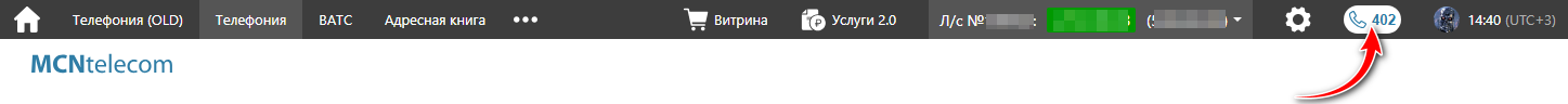Нажмите на кнопку MCN WebPhone в верхнем меню, чтобы открыть интерфейс управления вебфоном.