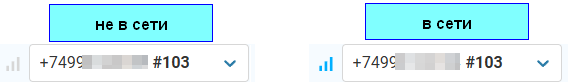 Слева от поля выбора исходящего номера отображается индикатор текущего состояния учетной записи SIP: серая иконка - пользователь не в сети, синяя иконка - в сети.