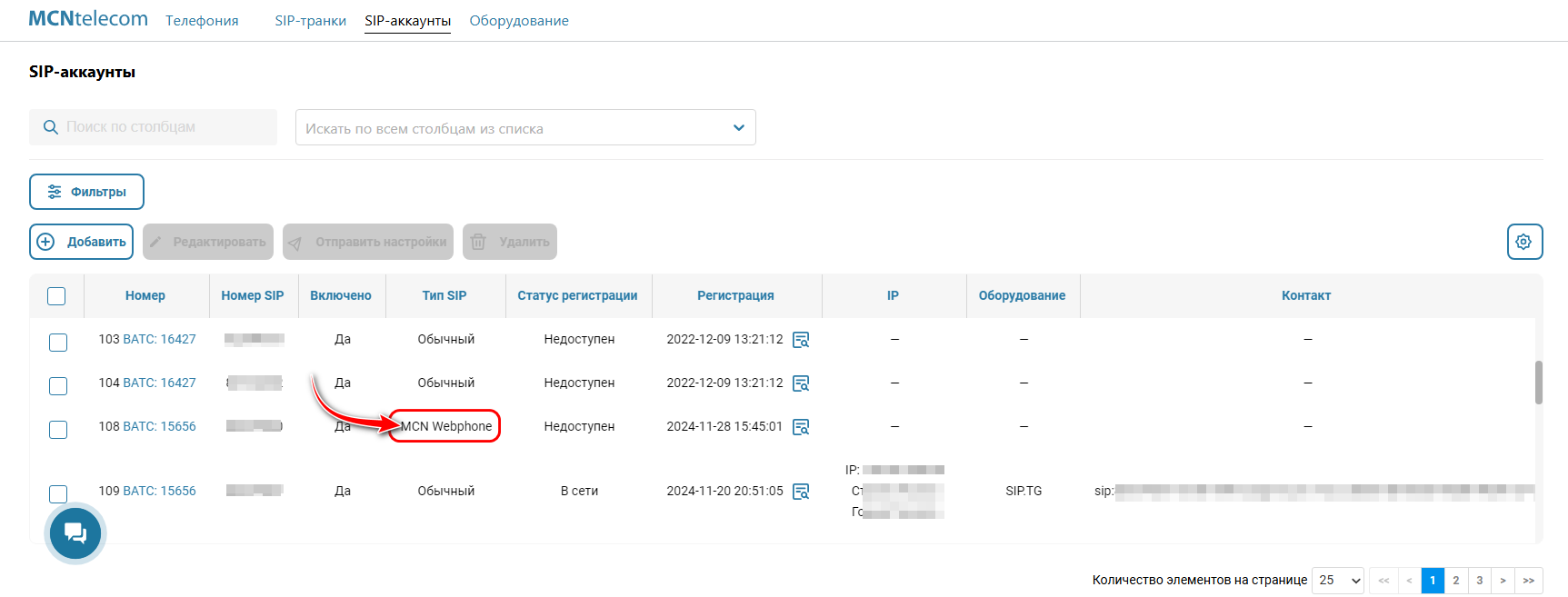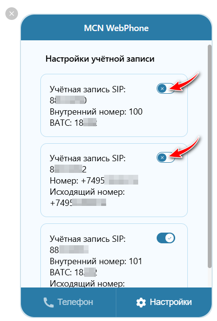 Для использования MCN WebPhone требуется учетная запись SIP с типом — MCN Webphone.