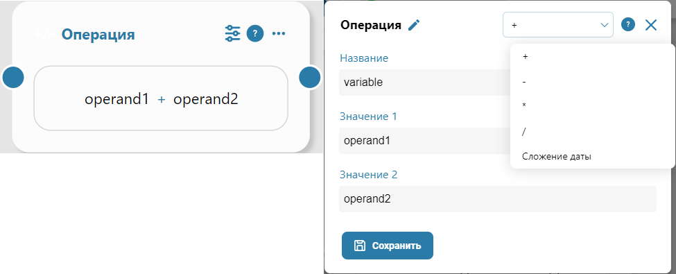 Операция — функция выполняемая над операндами (в правом верхнем углу)