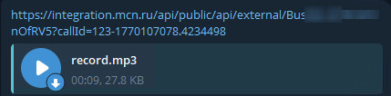 В поле Сообщение вставьте скопированную ссылку из прокси-метода «Скачивание записи разговора».