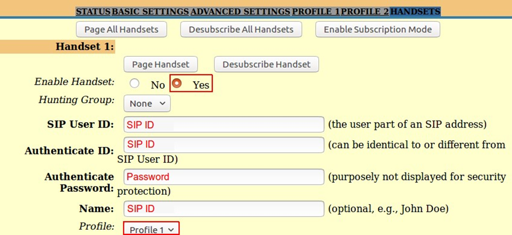 5. Перейдите во вкладку «Handsets» и укажите авторизационные данные вашей линии, как указано на рисунке 5.