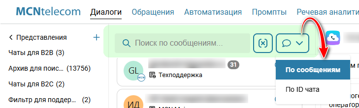 Диалоги Контакт-центра ИИ находятся на вкладке «Диалоги». См. «Контакт-центр ИИ → Диалоги».