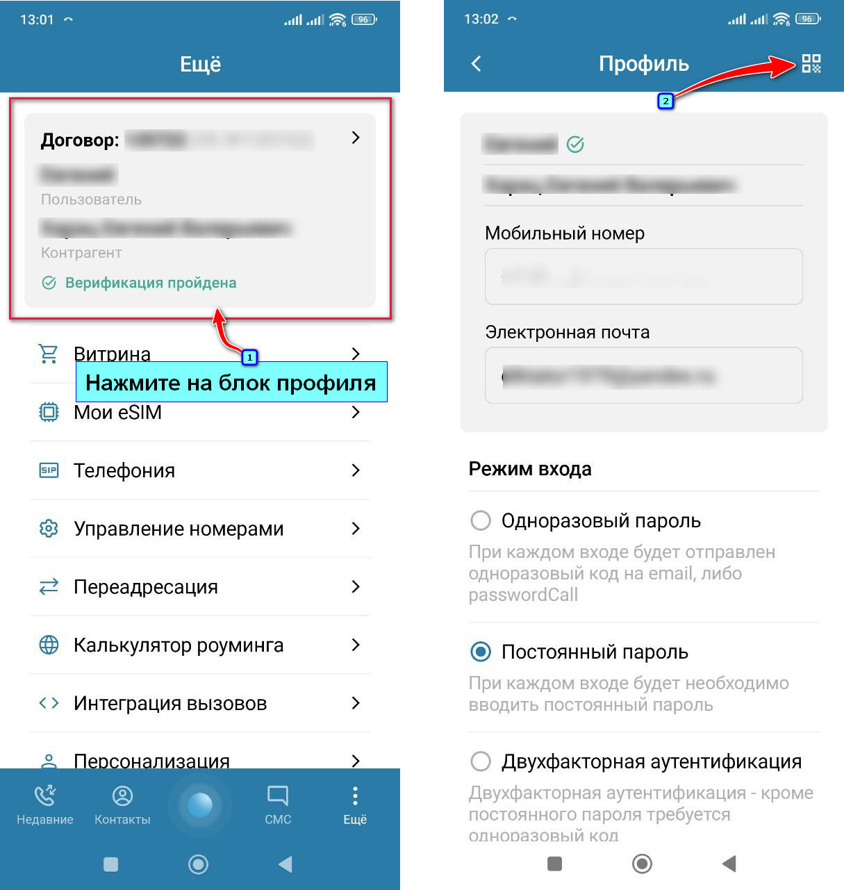 ⚠️Внимание! Для авторизации по qr-code на вашем смартфоне должен быть установлен «MCN Софтфон»! Подробнее см. «Загрузка и настройка MCN Софтфона». |